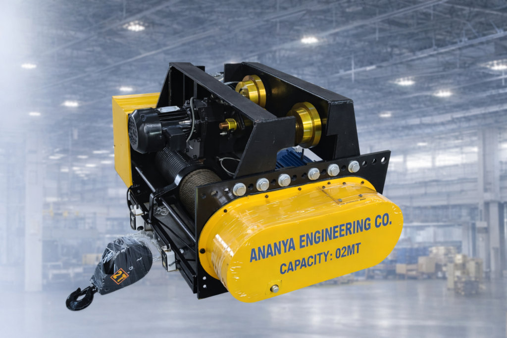 At Ananya Engineering Co., our wire rope hoists are designed and manufactured to meet Indian and international crane standards, ensuring long service life and reliable performance under demanding conditions.